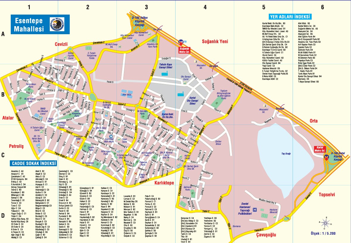 - Doğuda: Orta Mahallesi (Kartal Metro Kavşağı çevresi)