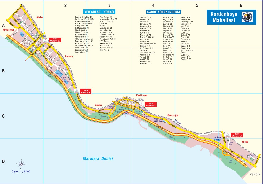 Kordonboyu, Kartal’ın sahil aksında yer alır ve çevresindeki mahallelerle güçlü geçiş verir. Pratik okuma:
