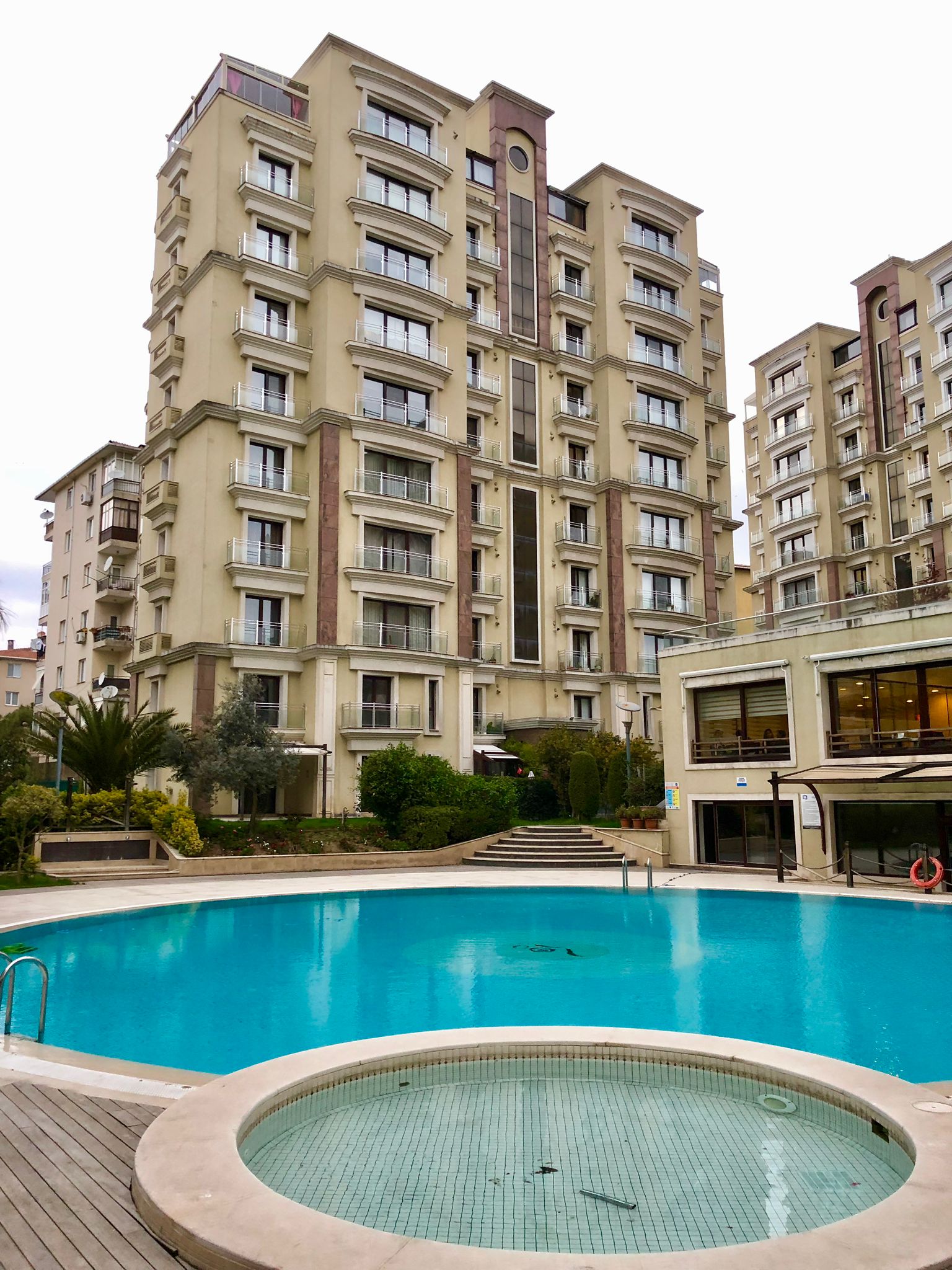 Kapalı ve açık yüzme havuzları, sauna, fitness, squash, barbekü ve yürüyüş alanları gibi birçok sosyal donatı mevcut.